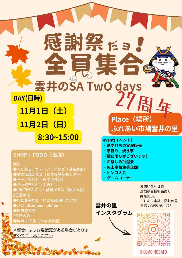 11/1・2 賑い伝染大作戦第一弾!雲井の里の感謝祭だよ~全員集合!